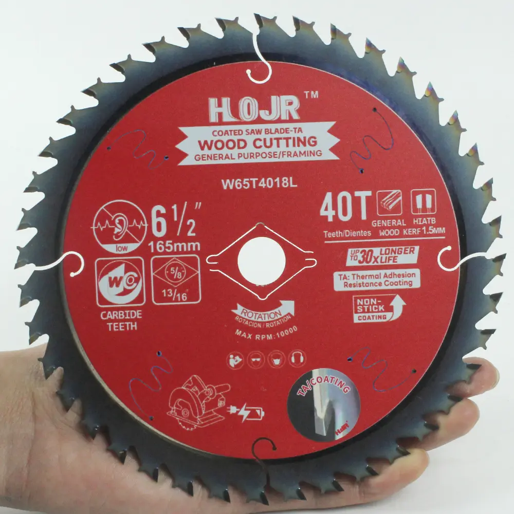 Wood Cutting Circular Saw Blade(With TA coating) 6-1/2” 40T General Purpose / Framing Saw Blade Item: W65T4018L